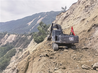 | 9月6日上午,工程机械在抢通从磨西镇向海螺沟景区的道路。 |