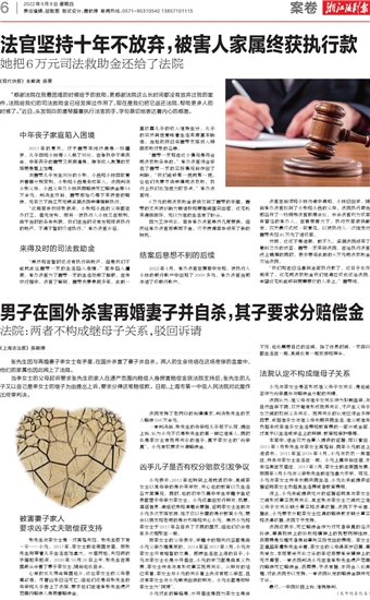 男子在国外杀害再婚妻子并自杀,其子要求分赔偿金
