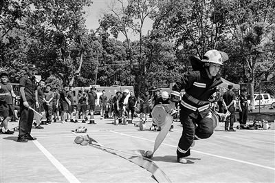 近日,温岭市消防队伍业务技能大比武举行。全市16支专职消防队、15支村(居)志愿消防队、17个重点单位(社区)微型消防站,在激烈比拼中提高了灭火救援综合能力。