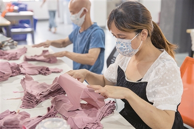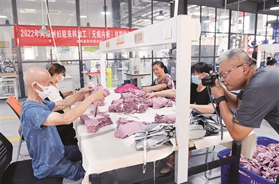 | ▲ 工人在来料加工车间工作 马荣壮 摄 |