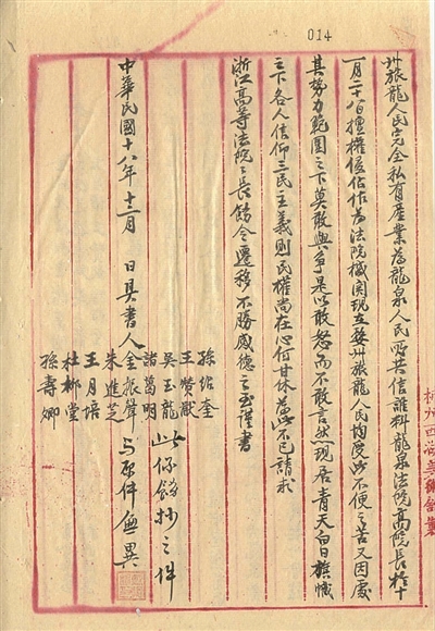 因法院占用县婺州会馆作为办公用房,引发婺州会馆商人集体抗议。9名商人直接上书到浙江省高等法院表示,婺州会馆“系婺州旅龙人民完全私有产业,为龙泉人民所共信。谁料龙泉法院高院长于十一月二十八日,擅权侵占作为法院机关……请求浙江高等法院院长饬令迁移,不甚感德之至”,之后还对法院侵占会馆的事实作了补叙。