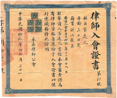 | 律师入会证书 |