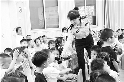 近日,江山公安民警深入辖区各学校,通过讲座、互动等方式,掀起“小手牵大手”反诈宣传新高潮。通讯员 王慧芬
