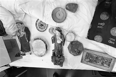 很快,警方在鄞州某地将准备潜逃的杨某抓获,并从他随身携带的箱子里找到其中一尊合和二仙木质浮雕,以及一块济公活佛像和若干青花瓷器。