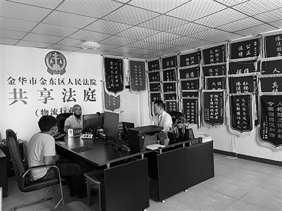 一桩纠纷成功化解,王卫新舒了口气。类似这样的纠纷调解,几乎每天都在上演。不过,有时遇到复杂疑难的案情,调解起来就没这么顺利。去年,金东区启动“共享法庭”建设并建立对接指导机制,调委会有了另一重身份——全市首家物流行业“共享法庭”。“在法官和律师的指导下,我们的调解工作底气更足,调解成功率越来越高,群众也越来越信服了。”王卫新说。