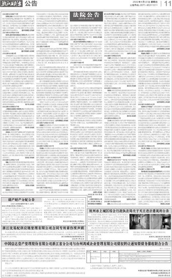 本院定于2022年10月27日9时00分在东阳市人民法院第14审判庭(地址:浙江省东阳市江北街道人民北路56号)召开第一次债权人会议。依法申报债权的债权人有权参加债权人会议。