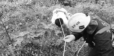 近日,慈溪市宗汉街道教场山北面,有爱心人士上山救助狗狗时被困半山腰。当地专职消防队的救援人员赶到现场后,成功将被困人员和狗狗一起救下。通讯员 马文文 摄