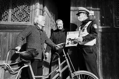 “大伯大妈,骑乘电动自行车要规范佩戴头盔,尽量不要选择夜间骑车出行。”连日来,在浦江县郑宅镇芦溪村,浦江县公安局交警大队民警敲门入户,向村里老人宣传交通安全知识,切实提升老人们的安全出行意识。通讯员 杨晓东 摄