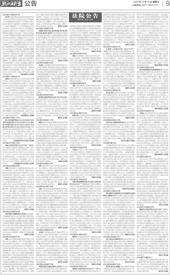 (2022)浙0282民初6913号 严雄:本院受理原告龚建盈诉被告严雄买卖合同纠纷一案,现已审理终结。因你下落不明,根据《中华人民共和国民事诉讼法》第九十五条之规定,现依法向你公告送达(2022)浙0282民初6913号民事判决书。本院判决:被告严雄于本判决生效之日起七日内支付原告龚建盈货款73511元,并支付自2022年7月5日起至实际清偿日止、以货款73511元为基数、按同期全国银行间同业拆借中心公布的贷款市场报价利率的1.5倍计算的利息损失。如果未按本判决指定的期间履行给付金钱义务,应当依照《中华人民共和国民事诉讼法》第二百六十条及相关司法解释之规定,加倍支付迟延履行期间的债务利息(加倍部分债务利息=债务人未清偿的生效法律文书确定的除一般债务利息之外的金钱债务×日万分之一点七五×履行期间)。案件受理费1638元,由被告严雄负担,于本判决生效之日起七日内交纳本院。公告费650元,由被告严雄负担,因原告已预缴,故由被告同上述判决款项一并交付原告。自公告之日起三十日内至本院观城人民法庭领取民事判决书,逾期则视为送达。如不服本判决,可在公告期满后十五日内,向本院递交上诉状及副本,上诉于浙江省宁波市中级人民法院。逾期未上诉的,本判决即发生法律效力。慈溪市人民法院(2022)浙0282民初8722号 钱雪敏、毕纪伟、梁正、陈齐荣、陈建、张少辉、但光明、罗央波、杨中军、胡文明:本院受理的原告宁波慈溪农村商业银行股份有限公司与被告钱雪敏、毕纪伟、梁正、陈齐荣、陈建、张少辉、但光明、罗央波、杨中军、胡文明信用卡纠纷一案,现依法向你们公告送达起诉状副本、原告证据副本、应诉通知书及诉讼当事人须知、举证通知书及当事人权利义务告知书、民事裁定书、开庭传票、民商事案件诉讼须知、外网查询告知书、廉政监督卡、自动履行告知书等诉讼材料。上述材料请至慈溪市人民法院民四庭领取,逾期不领,自发出本公告之日起经过30日,即视为送达。你们提出答辩状和举证的期限分别为公告送达期满后的15日内、30日内。本案定于2022年12月20日9时在本院第十四审判庭开庭审理,逾期将依法缺席判决。慈溪市人民法院