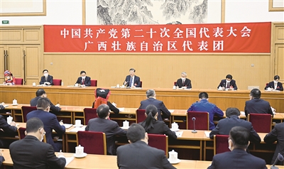 | 10月17日,习近平同志参加党的二十大广西代表团讨论。 新华社记者 谢环驰 摄 |