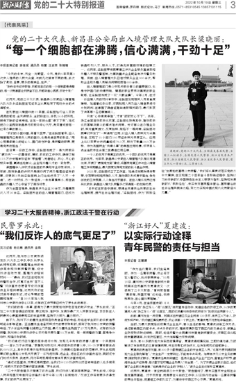 浙江法制报 党的二十大特别报道 00003 “每一个细胞都在沸腾,信心满满,干劲十足” 2022-10-19 2 2022年10月19日 星期三