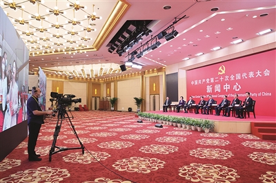 10月18日,中国共产党第二十次全国代表大会新闻中心举行集体采访。黑龙江、上海、江苏、浙江、安徽、福建、江西代表团新闻发言人出席,介绍代表团学习讨论二十大报告情况,并回答记者提问。