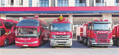 “我当时也没有想到,101米云梯车的加入,仅仅是一个开始。”朱百洪笑着说。这些年,从最远距离可达60米的远程供水车,最大射程可达150米的超重型举高泡沫车,重达50多吨、臂架可伸展到25米的重型挖掘机,到生命探测仪、消防机器人,消防队的设备越来越先进,功能越来越多,“就说这些特种车辆,它们再也不是传统意义上的‘救火车’了。”