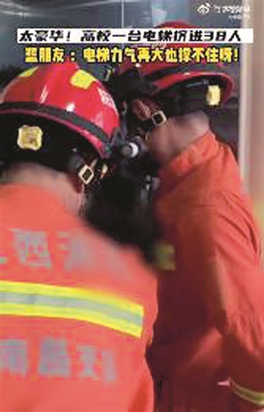 38人同挤一部电梯 发生故障全被困