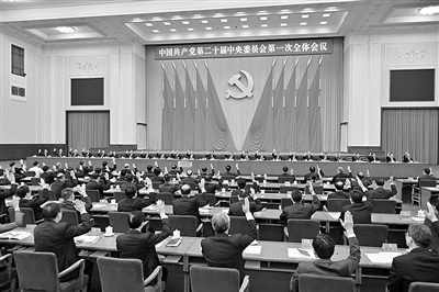 | 10月23日,中国共产党第二十届中央委员会第一次全体会议在北京人民大会堂举行。 新华社记者 李涛 摄 |
