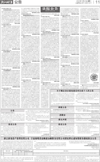 浙江浙易资产管理有限公司 宁波海曙香溢融通金融服务有限公司债权转让通知暨债务催收联合公告