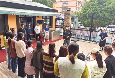 近日,台州市公安局椒江区分局巡特警大队民警应邀走进台州市机关中心幼儿园康平分园,为教职工、安保人员传授防范技能,讲解盾牌、钢叉等使用方法和注意事项,提高应对各类突发事件的处置能力。