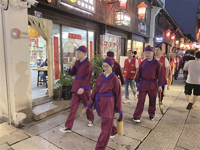 连日来,每天晚上7至9点,海宁硖石街道南关厢社区召集志愿者组成“打更队伍”,在历史文化街区以打更形式,宣传消防安全、疫情防控、反诈防诈等知识。通讯员 庄立飞