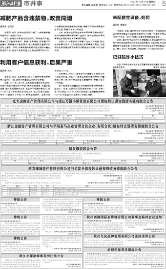 光大金鸥资产管理有限公司与浦江万银小额贷款有限公司债权转让通知暨债务催收联合公告