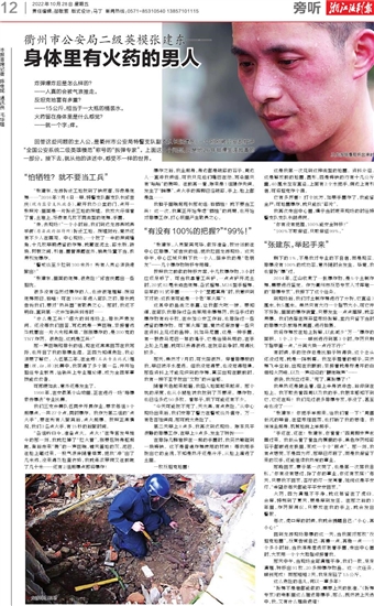 回答这些问题的主人公,是衢州市公安局特警支队副支队长张建东,一个刚刚被公安部授予“全国公安系统二级英雄模范”称号的“拆弹专家”。上面这3个问题,只是他26年排爆生涯故事的一部分。接下去,就从他的讲述中,感受不一样的世界。