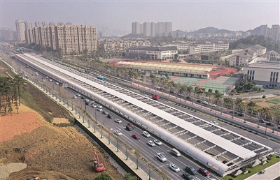 11月2日,杭州中环—运溪路下穿杭徽隧道工程北侧,一条全长431米的全影型声屏障已基本成型。据悉,这是杭州单体跨度最大的全影型声屏障,这种新型交通降噪屏障比普通直立式声屏障阻隔面更大,在声源侧面和顶部都设置了透明阻声材料,不仅对道路周边底层房屋有减噪效果,对6层以上高层建筑同样有不错的减噪能力。