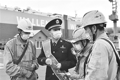 近日,舟山出入境边防检查站联合舟山海关、海事等部门来到万邦永跃船舶修造船厂、六横浙江浙能港口运营管理有限公司、舟山中远海运重工有限公司,与企业员工和码头工人共同学习领会党的二十大精神。通讯员 陈霄 方迎豪