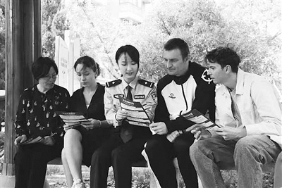 近日,江山市公安局出入境管理大队会同江山市政府外事办公室,前往辖区涉外企事业单位开展反诈宣传。民警向外籍员工推广“国家反诈中心”APP,并送上外文反诈宣传资料等。通讯员 朱忆郎