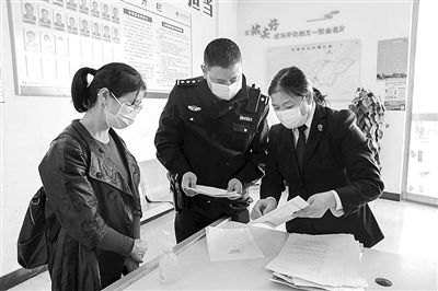 近日,开化县人民法院依法发出人身安全保护令,对受到家庭暴力威胁的薛某及其家人进行人身安全保护。图为法官将保护令送达至当事人所在辖区派出所,请求予以协助执行。