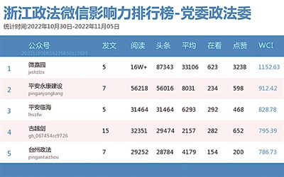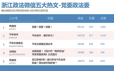 本期政法委榜单,“微嘉园”以阅读量16w+的绝对优势持续霸榜,夺得双料冠军。该公众号发布的《预警!预警!预警!》以91131的阅读数获得第一。文中针对“双十一”购物节,引导大家在网购时要提高反诈意识,谨防上当受骗。