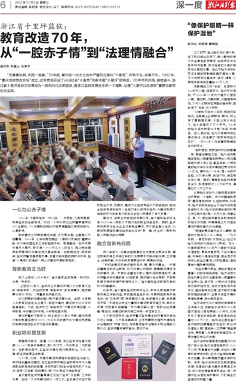 “天晴像块钢,天雨一泡糊。”70年前,衢州有一处水土流失严重的丘陵叫“十里荒”,作物不生,杂草不长。1952年,“衢州龙游劳改农场”成立,这块荒地开启了从旧社会“十里荒”向新中国“十里坪”的转变。70年栉风沐雨、接续奋斗,浙江省十里坪监狱已发展成为一座现代化文明监狱,是浙江监狱发展进步的一个缩影,也是“人是可以改造的”重要论断的生动实践。