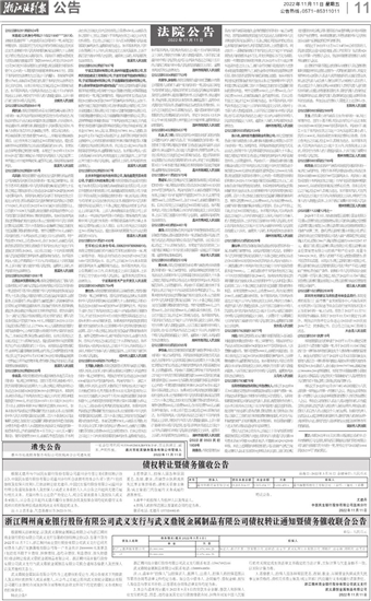 浙江稠州商业银行股份有限公司武义支行与武义鼎锐金属制品有限公司债权转让通知暨债务催收联合公告