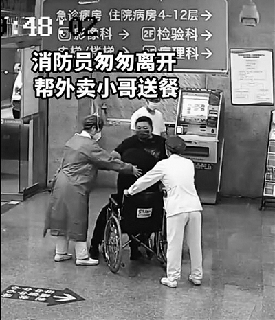 近日,福建泉州,一外卖小哥连人带车摔倒在路边。正在休假的消防员卓扬路过,立即上前查看,并骑车将其送医。随后,他联系点餐人说明情况,帮外卖小哥送餐。卓扬还返回医院,确认小哥伤情无大碍,才安心离开。