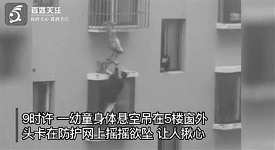 惊心动魄! 幼童悬5楼窗外邻居兵分三路救援