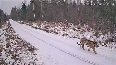 记者16日从黑龙江省伊春市委宣传部获悉,11月15日14时,在伊春市丰林县五营林业局有限公司永丰林场分公司,一处监控设备拍摄到东北虎。东北林业大学猫科动物研究中心对足迹进行了鉴定,认定为野生东北虎。