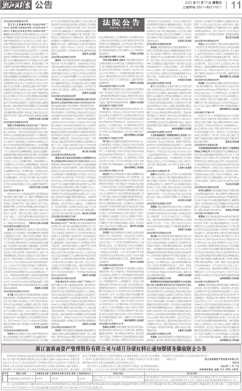 浙江省浙商资产管理股份有限公司与胡月珍债权转让通知暨债务催收联合公告