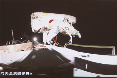 | 11月17日在北京航天飞行控制中心拍摄的神舟十四号航天员蔡旭哲成功出舱的画面。 |