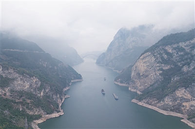 11月21日,船舶行驶在长江三峡西陵峡秭归县水域(无人机照片)。