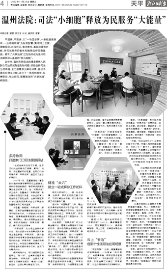 温州法院:司法“小细胞”释放为民服务“大能量”