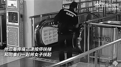 近日,安徽合肥,一女子在地铁扶梯上俯身捡拾随身物品时不慎摔倒。95后辅警王厚禹迅速反应,飞身跨越护栏救人,却在落地时不慎将脚扭伤。他强忍疼痛上前,按下扶梯急停按钮,和同事一起将摔倒女子扶起,整个过程仅10秒左右。
