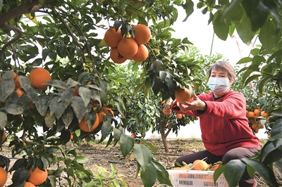 11月26日,村民在安徽省合肥市肥西县铭传乡王井社区特色蔬果产业园内采摘“红美人”柑橘。