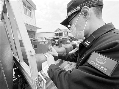 近日,衢州市开发区消防救援大队将定制的上千份消防安全提示一一贴上液化石油气罐,提醒辖区居民群众安全用气、注意防火安全。