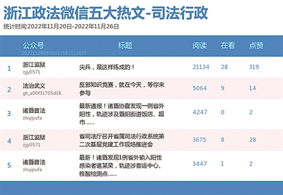 本期司法行政榜,老将“浙江监狱”稳坐冠军宝座。热文榜上,其《尖兵,是这样练成的!》一文以图片、视频形式,为大家展现了浙江监狱人民警察岗位练兵时的飒爽英姿。