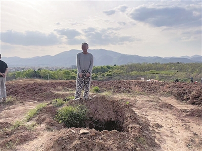 他拿着一把勾刀,往半山腰走去,可哪怕分开一些茶树,也看不到脚底的路。没多久,他就被茶树所“淹没”。十几分钟后,半山腰传来一声惨叫——“我掉洞里了!”他掉进去的是一个盗洞,2米多深,没有活动空间,自己无法爬出洞口。