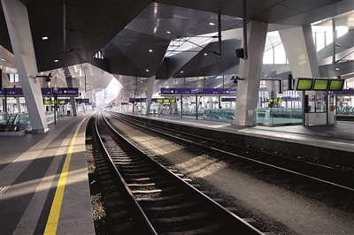 这是11月28日在奥地利维也纳一处车站拍摄的空旷的铁轨。