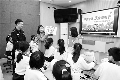 连日来,临海市公安局杜桥派出所会同镇妇联开展了一系列反家暴宣传活动,倡导良好家风家教,助力平安建设。图为“童声反家暴·共建平安家”儿童手绘主题活动在杜桥小学举行。