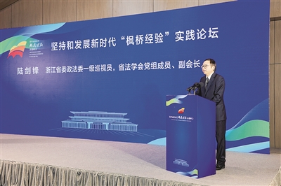 浙江省委政法委一级巡视员,省法学会党组成员、副会长陆剑锋充分肯定了本次实践论坛。他指出,本次论坛主题聚焦、站位高,特色鲜明、亮点多,交流热烈、氛围好,通过实践探索、经验总结、理性思辨、交流互进,在秩序和活力、效率和效益、方法论和方法中寻找最佳的善治答案,深刻揭示了中国式治理的内涵变迁和底层逻辑,既是贯彻落实党的二十大精神的一项具体措施,也是探索总结新时代“枫桥经验”实践的一次经验交流。