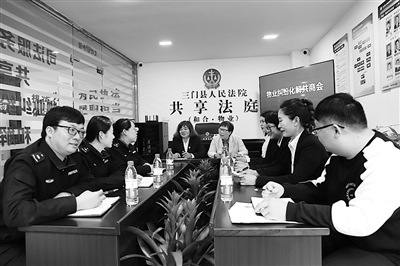 今年2月,借助县综合行政执法局创建“和合街区”全国市域社会治理现代化试点项目契机,三门法院弘扬“和合”解纷理念,让“和合·物业共享法庭”入驻“和合街区”,集成发挥法院纠纷化解职能和执法局行业管理职能,实现平台贯通、数据共享、业务协同,共同创新服务供给形式,精准回应行业需求。