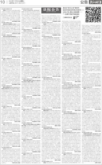 (2022)浙0282民初9844号 黄雅鹤、章池阳:本院受理的原告孙群策与被告黄雅鹤、章池阳追偿权纠纷一案,现依法向被告公告送达起诉状副本、原告证据副本、应诉通知书及诉讼当事人须知、举证通知书及当事人权利义务告知书、开庭传票、民事裁定书、民商事案件诉讼须知、外网查询告知书、廉政监督卡、自动履行告知书等诉讼材料。上述材料请至慈溪市人民法院浒山法庭领取,逾期不领,自发出本公告之日起经过30日,即视为送达。你们提出答辩状和举证的期限为公告送达期满后的15日内。本案定于2023年2月6日14时30分在本院浒山人民法庭第二审判庭开庭审理,逾期将依法缺席判决。慈溪市人民法院(2022)浙0282民初8054号 沈阳恒达房地产开发有限公司:本院受理关于原告徐州润晟豪工贸有限公司与被告沈阳恒达房地产开发有限公司、慈溪市文逸电器制造有限公司票据追索权纠纷一案,现已审理终结。因无法以其他方式向你送达相关诉讼文书,根据《中华人民共和国民事诉讼法》第九十五条之规定,现依法向你公告送达(2022)浙0282民初8054号民事判决书。本院判决:一、被告沈阳恒达房地产开发有限公司于本判决生效之日起七日内支付原告徐州润晟豪工贸有限公司电子商业承兑汇票本金300万元,并支付自2021年12月15日起至实际清偿日止、以汇票本金300万元为基数、按同期全国银行间同业拆借中心公布的一年期贷款市场报价利率(LPR)计算的利息;二、驳回原告徐州润晟豪工贸有限公司的其余诉讼请求。案件受理费31360元,由被告沈阳恒达房地产开发有限公司负担,于本判决生效之日起七日内交纳本院。本案公告费300元(原告已支付),由被告沈阳恒达房地产开发有限公司负担,于本判决生效之日起七日内直接支付原告徐州润晟豪工贸有限公司。自公告之日起30日内至慈溪市人民法院领取民事判决书,逾期则视为送达。如不服本判决,可在公告期满后15日内,向本院递交上诉状及副本,上诉于浙江省宁波市中级人民法院。逾期未上诉的,本判决即发生法律效力。慈溪市人民法院(2022)浙0282民初10577号 许刚刚:本院已受理原告宁波学法贸易有限公司诉你买卖合同纠纷一案,因无法用其他方式向你送达,现本院依法向你公告送达(2022)浙0282民初10577号民事裁定书、起诉状副本、证据副本、应诉通知书、举证通知书、民商事案件诉讼须知、廉政监督卡、当事人的民事诉讼权利和义务、自动履行告知书、甬法一键通使用告知书及开庭传票。原告起诉要求:1.判令你支付原告轮胎款30000元,并赔偿原告自2022年5月2日起至实际清偿日止、以30000元为基数、按年利率10%计算的利息损失(截至2022年10月13日计1366.67元);2.判令你支付原告律师代理费3000元;3.案件诉讼费由你承担。自本公告发出之日经过30日即视为送达,答辩和举证期限分别为公告期满后的15日内和30日内,并定于2023年2月6日上午8时30分在本院虎山法庭公开开庭审理,逾期将依法缺席裁判。慈溪市人民法院