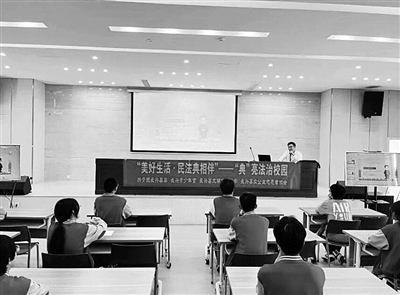 近日,共青团长兴县委联合长兴青少年宫、众公益志愿者协会,在太湖高级中学举办“美好生活·民法典相伴”——“典”亮法治校园主题教育活动,引导广大青少年树立法治意识。通讯员 邹玲