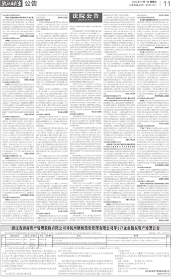 (2022)浙0783民初9556号 黄黎浩:本院受理原告卢文龙诉你买卖合同纠纷一案,因无法直接向你送达诉讼材料,现依法向你公告送达(2022)浙0783民初9556号起诉状副本、应诉通知书、举证通知书、民事诉讼须知、民事诉讼风险提示书、外网查询告知书、廉政监督卡、民事裁定书(简转普)、开庭传票。自本公告发出之日起,经过三十日即视为送达。答辩期限和举证期限均为公告期满后二十日内。本案由审判员吕璎适用普通程序独任审判,定于2023年1月31日上午8时40分在东阳市人民法院第15号法庭公开开庭审理,逾期将依法缺席裁判。东阳市人民法院(2022)浙0723破39号 本院根据西藏龙租融资租赁有限公司的申请于2022年11月24日裁定受理了浙江汉力士控股有限公司破产清算一案,并于2022年11月28日指定浙江前程律师事务所为浙江汉力士控股有限公司管理人。 浙江汉力士控股有限公司的债权人应在2023年1月13日前,向浙江汉力士控股有限公司管理人申报债权(申报地址:浙江省武义县武阳东路银田大厦东边6楼浙江前程律师事务所;邮政编码:321200;联系电话:徐律师13566932827、潘律师15905892606,申报债权时间为工作日上午9时00分至11时30分、下午14时00分至17时00分,法定节假日、休息日除外),债权人应当书面说明债权数额、有无财产担保及是否属于连带债权,并提供相关证据材料。如未能在上述期限内申报债权,可以在破产财产分配方案提交债权人会议讨论前补充申报,但对此前已进行的分配,无权要求补充分配,同时要承担为审查和确认补充申报债权产生的费用。未申报债权的,不得依照《中华人民共和国企业破产法》规定的程序行使权利。浙江汉力士控股有限公司的债务人或者财产持有人应当向浙江汉力士控股有限公司管理人清偿债务或交付财产。 浙江汉力士控股有限公司的法定代表人、股东、高管及财务负责人应在2022年12月23日前向管理人提交述职报告、提交财产状况说明、债务清册、债权清册、有关财务会计报告以及职工工资的支付和保险费的缴纳情况,并交付占有和管理的财产、印章和账簿、文书等资料。未在期限内履行上述义务的,将依法追究相应法律责任。 本院定于2023年2月22日(星期三)上午9时整在武义县人民法院第十一法庭(武义县宝塔路9号)召开第一次债权人会议。依法申报债权的债权人为债权人会议的成员,有权参加债权人会议,会议以庭审直播和书面相结合形式召开。参加会议的债权人系法人或其他组织的,应提交营业执照、法定代表人或负责人身份证明书;债权人系自然人的,应提交个人身份证明。如债权人委托代理人出席会议,应提交特别授权委托书、委托代理人的身份证件或律师执业证,委托代理人是律师的还应提交律师事务所的指派函。武义县人民法院(2022)浙0723破36号 本院根据王中平的申请于2022年11月22日裁定受理王中平(1955年10月出生,住浙江省武义县熟溪街道环城南路88号)个人债务集中清理的申请,并指定浙江前程律师事务所为王中平个人债务集中清理的管理人。 自人民法院受理个人债务集中清理申请之日起至程序终结之日或者债务人行为考察期满之日止,王中平不得有以下消费行为:(一)乘坐交通工具时,选择飞机商务舱、头等舱、列车软卧、轮船二等以上舱位、G字头高速动车组旅客列车二等及其他动车组一等以上座位;(二)在三星级以上宾馆、酒店、夜总会、高尔夫球场等场所进行消费;(三)购买不动产或者新建、扩建、高档装修房屋;(四)租赁高档写字楼、宾馆、公寓等场所办公;(五)购买机动车辆;(六)旅游、度假;(七)子女就读高收费私立学校;(八)支付高额保费购买保险理财产品;(九)其他非生活和工作必须的消费行为。 王中平的债权人应于2022年12月31日前向管理人申报债权,(债权申报地址及通讯地址:浙江省武义县武阳东路银田大厦东边6楼浙江前程律师事务所;邮政编码:321200;联系电话:徐律师13566932827、潘律师15905892606),书面说明债权数额、有无财产担保及是否属于连带债权,并提供相关证据材料。未在上述期限内申报债权的,可以在债务人财产最后分配前补充申报,但对此前已进行的分配无权要求补充分配,同时要承担为审查和确认补充申报债权所产生的费用。王中平的债务人或者财产持有人应当向王中平个人债务集中清理管理人清偿债务或交付财产。 本院定于2023年2月14日(星期二)上午9时00分在武义县人民法院第十一法庭(地址:武义县宝塔路9号)召开王中平个人债务集中清理程序第一次债权人会议。依法申报债权的债权人有权参加债权人会议。参加会议的债权人系法人或其他组织的,应提交营业执照、法定代表人或负责人身份证明书,如委托代理人出席会议,应提交特别授权委托书、委托代理人的身份证件或律师执业证,委托代理人是律师的还应提交律师事务所的指派函。参加会议的债权人系自然人的,应提交个人身份证明。如委托代理人出席会议,应提交特别授权委托书、委托代理人的身份证件或律师执业证,委托代理人是律师的还应提交律师事务所的指派函。武义县人民法院